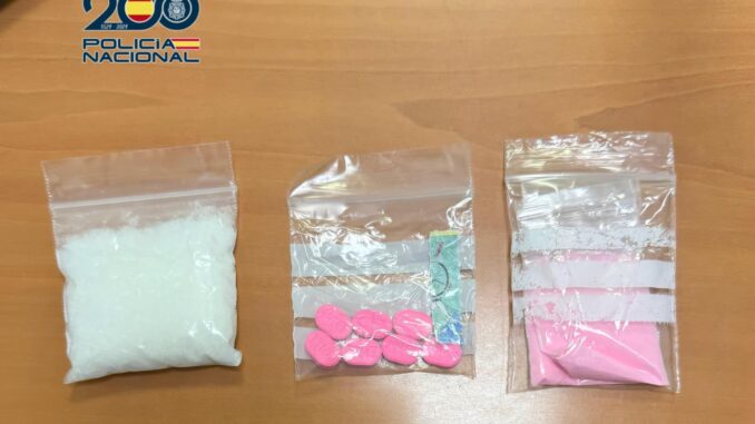 Los agentes comprobaron que en el interior del vehículo había otras tres personas, que mostraban signos de nerviosismo, por lo que procedieron a su identificación. Durante el cacheo de seguridad, localizaron en posesión del sospechoso diversas sustancias estupefacientes, entre ellas unos 16 gramos de ketamina, varias pastillas de éxtasis, dosis de LSD y varios gramos de “tusi” o cocaína rosa.