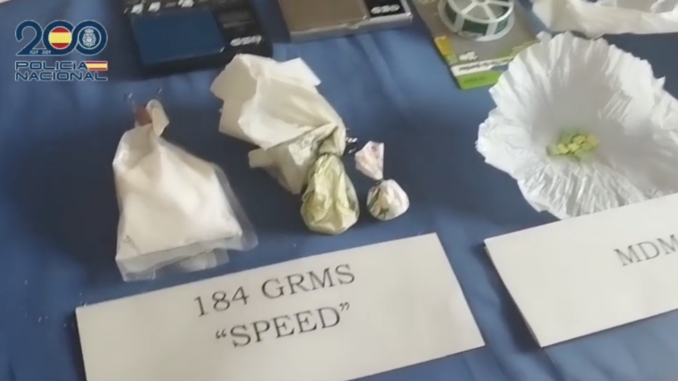 En concreto, se intervinieron 184 gramos de speed (sulfato de anfetamina), diez pastillas de MDMA, 874 gramos de sustancia de corte —presuntamente cafeína—, dos básculas de precisión, diversos útiles para la manipulación y preparación de dosis, así como 70 euros en efectivo. Parte de la droga se encontraba oculta en el congelador, una práctica habitual para conservar sus propiedades y evitar la pérdida de peso.