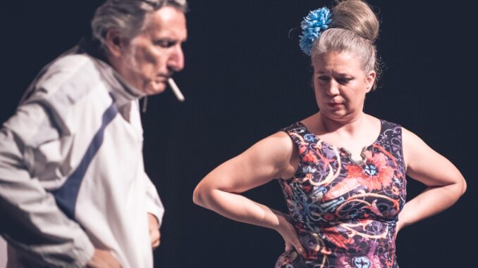 La obra mantiene las señas de identidad de sus producciones, sin cuarta pared, con música en vivo y pequeñas dosis de improvisación
