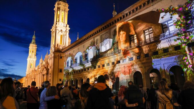 Zaragoza se viste de siglo XVIII este fin de semana. Las Fiestas Goyescas arrancan este viernes con el entorno de la plaza del Pilar y el Casco Histórico como gran escenario, y con el videomapping sobre la fachada del Ayuntamiento como plato fuerte de cada jornada. La proyección, completamente renovada respecto a ediciones anteriores, propone un recorrido cronológico por la vida y la obra de Francisco de Goya: desde su infancia en Fuendetodos y sus años en Zaragoza —con sus intervenciones en la Basílica del Pilar— hasta su exilio final en Burdeos, pasando por la corte madrileña, Los Caprichos, Los Disparates y el reflejo de la Guerra en su pintura.